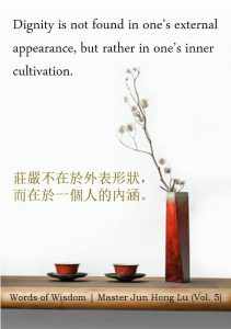 Words of Wisdom | Inner Cultivation Published on November 13, 2020 Dignity is not found in one’s external appearance, but rather in one’s inner cultivation. 庄严不在于外表形状, 而在于一个人的内涵。 – Master Jun Hong Lu, Words of Wisdom Volume 5