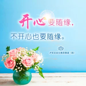 Words of Wisdom Words of Wisdom | Karmic Conditions 25/10/2020 | Words of Wisdom Words of Wisdom < Words of Wisdom You need to accord with karmic conditions when you are happy; more so if you are unhappy. 开心要随缘,不开心也要随缘。 Master Jun Hong Lu, Words of Wisdom Volume 4 < Words of Wisdom