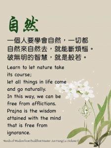 Learn to let nature take its course; let all things in life come and go naturally. In this way, we can be free from afflictions. Prajna is the wisdom attained with the mind that is free from ignorance.