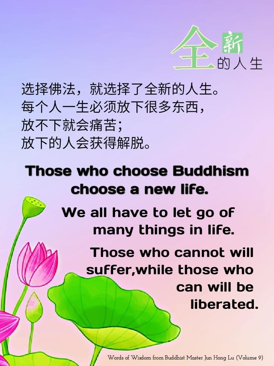 Those who choose Buddhism choose a new life. We all have to let go of many things in life. Those who cannot will suffer, while those who can will be liberated.