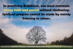In practising Buddhism, one must maintain strong faith and persist without slackening. Spiritual progress cannot be made by merely listening to others.