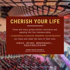 Cherish your life. Those who enjoy giving without reluctance and applying the Four Immeasurables Loving-kindness, Compassion, Sympathetic Joy and Equanimity are those who make the most of their lives.