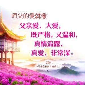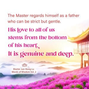 The Master regards himself as a father who can be strict but gentle. His love to all of us stems from the bottom of his heart. It is genuine and deep.