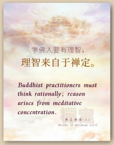 Words of Wisdom Words of Wisdom | meditative concentration 08/09/2020 | Words of Wisdom Words of Wisdom < Words of Wisdom Buddhist practitioners must think rationally; reason arises from meditative concentration. 学佛人要有理智,理智来自于禅定。 – Master Jun Hong Lu, Words of Wisdom Volume 6 < Words of Wisdom