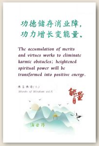 The accumulation of merits and virtues works to eliminate karmic obstacles; heightened spiritual power will be transformed into positive energy.