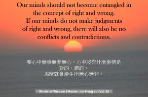 Our minds should not become entangled in the concept of right and wrong. If our minds do not make judgments of right and wrong, there will also be no conflicts and contradictions.