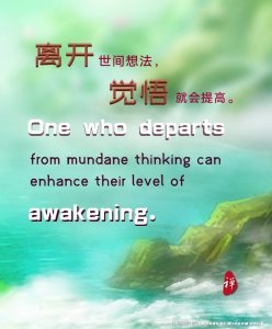 Words of Wisdom Words of Wisdom | Mundane Thinking 31/10/2020 | Words of Wisdom Words of Wisdom < Words of Wisdom One who departs from mundane thinking can enhance their level of awakening. 离开世间想法,觉悟就会提高。 – Master Jun Hong Lu, Words of Wisdom Volume 6 < Words of Wisdom