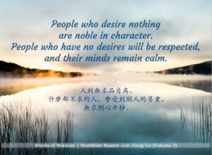 People who desire nothing are noble in character. People who have no desires will be respected, and their minds remain calm.