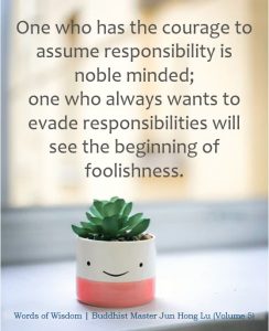 One who has the courage to assume responsibility is noble-minded; one who always wants to evade responsibilities will see the beginning of foolishness.