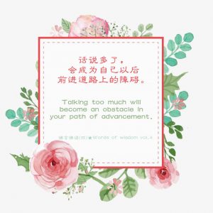 Words of Wisdom | Obstacle In Your Path Of Advancement Published on October 25, 2020 Talking too much will become an obstacle in your path of advancement. 话说多了, 会成为自己以后前进道路上的障碍。 Master Jun Hong Lu, Words of Wisdom Volume 4