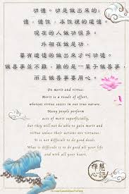 On merit and virtue: Merit is a result of effort, whereas virtue exists in our true nature. Many people perform acts of merit superficially, but they will not be able to gain merit and virtue unless their actions are virtuous. It is not difficult to do good deeds. What is difficult is to do good all your life and with all your heart.