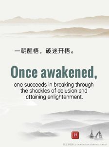 Words of Wisdom | Once Awakened Published on October 16, 2020 Once awakened, one succeeds in breaking through the shackles of delusion and attaining enlightenment. 一朝醒悟,破迷开悟。 – Master Jun Hong Lu, Words of Wisdom Volume 8