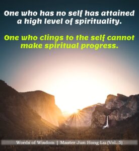 Words of Wisdom Words of Wisdom | One Who Has No Self 14/11/2020 | Words of Wisdom Words of Wisdom < Words of Wisdom One who has no self has attained a high level of spirituality. One who clings to the self cannot make spiritual progress. 无我才有境界,有我就没有境界了。 – Master Jun Hong Lu, Words of Wisdom Volume 5 < Words of Wisdom
