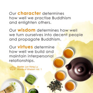 Our character determines how well we practise Buddhism and enlighten others. Our wisdom determines how well we turn ourselves into decent people and propagate Buddhism. Our virtues determine how well we build and maintain interpersonal relationships. When we face everyone and everything in life with compassion and wisdom, we find ourselves more open and free.