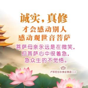 诚实,真修,才会感动别人,感动观世音菩萨。菩萨母亲永远是在微笑,但菩萨心中很着急,急众生的不觉悟。