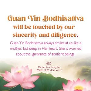 Guan Yin Bodhisattva will be touched by our sincerity and diligence. Guan Yin Bodhisattva always smiles at us like a mother, but deep in Her heart, She is worried about the ignorance of sentient beings.
