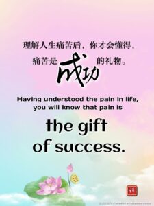 Words of Wisdom | Pain Is The Gift Of Success Published on October 23, 2020 Having understood the pain in life, you will know that pain is the gift of success. 理解人生痛苦后,你才会懂得,痛苦是成功的礼物。 – Master Jun Hong Lu, Words of Wisdom Volume 8
