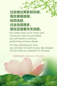 过去做过再多的功德, 现在要继续做, 如同洗脸, 过去洗得再多, 现在还是要天天洗脸。