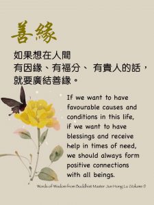 If we want to have favourable causes and conditions in this life, if we want to have blessings and receive help in times of need, we should always form positive connections with all beings.