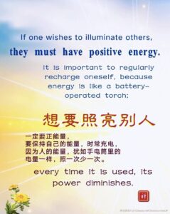 If one wishes to illuminate others, they must have positive energy. It is important to regularly recharge oneself, because energy is like a battery-operated torch; every time it is used, its power diminishes.