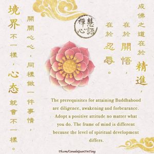 The prerequisites for attaining Buddhahood are diligence, awakening and forbearance.