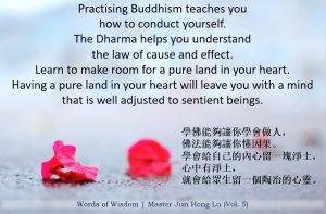 Practising Buddhism teaches you how to conduct yourself. The Dharma helps you understand the law of cause and effect. Learn to make room for a pure land in your heart. Having a pure land in your heart will leave you with a mind that is well-adjusted to sentient beings.