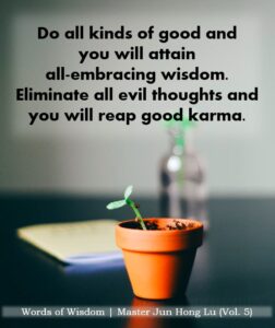 Do all kinds of good and you will attain all-embracing wisdom. Eliminate all evil thoughts and you will reap good karma.
