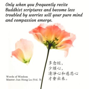 Only when you frequently recite Buddhist scriptures and become less troubled by worries will your pure mind and compassion emerge.