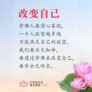 学佛人要清心寡欲,一个人欲望越多 越不能满足自己的欲望。我们要乐天知命,要透过学佛来改变自己,要学会无所求。