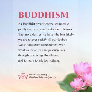 As Buddhist practitioners, we need to purify our hearts and reduce our desires. The more desires we have, the less likely we are to ever satisfy all our desires. We should learn to be content with what we have, to change ourselves through practising Buddhism, and to learn to ask for nothing.