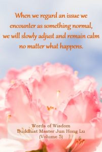 When we regard an issue we encounter as something normal, we will slowly adjust and remain calm no matter what happens.