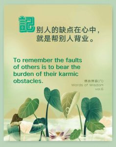 Words of Wisdom | Remembering Faults Published on September 8, 2020 To remember the faults of others is to bear the burden of their karmic obstacles. 记别人的缺点在心中,就是帮别人背业。 – Master Jun Hong Lu, Words of Wisdom Volume 6
