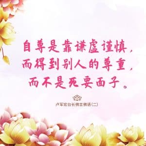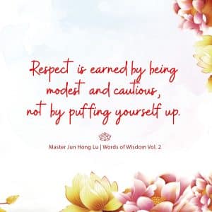 Words of Wisdom Words of Wisdom | Respect and Modesty 11/10/2020 | Words of Wisdom Words of Wisdom < Words of Wisdom Respect is earned by being modest and cautious, not by puffing yourself up. 自尊是靠谦虚谨慎,而得到别人的尊重,而不是死要面子。 – Master Jun Hong Lu, Words of Wisdom Volume 2 < Words of Wisdom