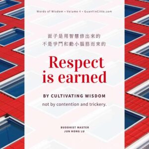Words of Wisdom | Respect Is Earned By Cultivating Wisdom Published on November 12, 2020 Respect is earned by cultivating wisdom, not by contention and trickery. 面子是用智慧修出来的, 不是争斗和动小脑筋而来的。 Master Jun Hong Lu, Words of Wisdom Volume 4
