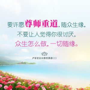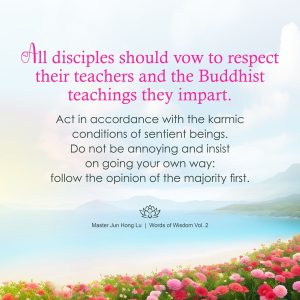 All disciples should vow to respect their teachers and the Buddhist teachings they impart. Act in accordance with the karmic conditions of sentient beings. Do not be annoying and insist on going your own way: follow the opinion of the majority first.