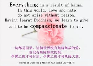 Everything is a result of karma. In this world, love and hate do not arise without reason. Having learnt Buddhism, we learn to give and to be compassionate to all.