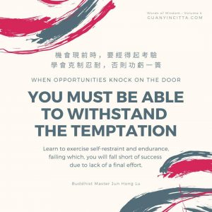 机会现前时,要经得起考验, 学会克制忍耐,否则功亏一篑。