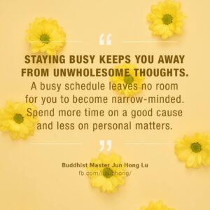 Staying busy keeps you away from unwholesome thoughts. A busy schedule leaves no room for you to become narrow-minded. Spend more time on a good cause and less on personal matters.