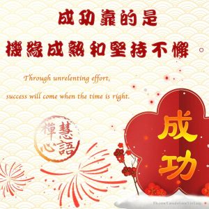 Words of Wisdom | Success Will Come When The Time Is Right Published on October 30, 2020 Through unrelenting effort, success will come when the time is right. 成功靠的是机缘成熟和坚持不懈。 Master Jun Hong Lu, Words of Wisdom Volume 4