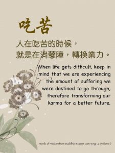 When life gets difficult, keep in mind that we are experiencing the amount of suffering we were destined to go through, therefore transforming our karma for a better future.