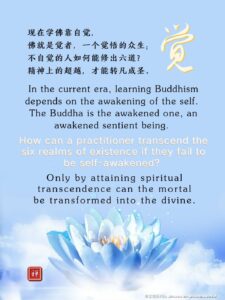 How can a practitioner transcend the six realms of existence if they fail to be self awakened? Only by attaining spiritual transcendence can the mortal be transformed into the divine.