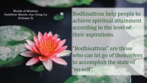 Bodhisattvas help people to achieve spiritual attainment according to the level of their aspirations. “Bodhisattvas” are those who can let go of themselves to accomplish the state of ‘no-self’.
