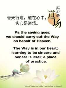 As the saying goes: we should carry out the Way on behalf of Heaven. The Way is in our heart; learning to be sincere and honest is itself a place of practice.