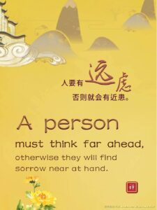 Words of Wisdom Words of Wisdom | Think far ahead 11/02/2021 | Words of Wisdom Words of Wisdom < Words of Wisdom A person must think far ahead, otherwise they will find sorrow near at hand. 人要有远虑,否则就会有近患。 – Master Jun Hong Lu, Words of Wisdom Volume 7 < Words of Wisdom