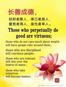 Those who perpetually do good are virtuous; those who do not care much about wealth will have people rally around them; those who are disciplined will convince people; those who are tolerant will win over the hearts of many; those who take initiatives will become leaders.