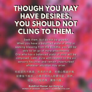 When you have a balanced state of mind in seeking blessing from the Buddha, you will be able to let go of more attachments. One who has a balanced state of mind will be