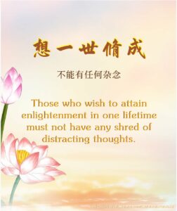 Those who wish to attain enlightenment in one lifetime must not have any shred of distracting thoughts.