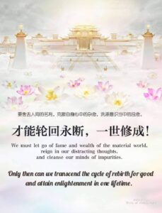 We must let go of fame and wealth of the material world, reign in our distracting thoughts, and cleanse our minds of impurities. Only then can we transcend the cycle of