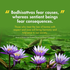 Bodhisattvas fear causes, whereas sentient beings fear consequences. Those who treat the law of karma with respect and awe will bring harmony and tolerance to our society.