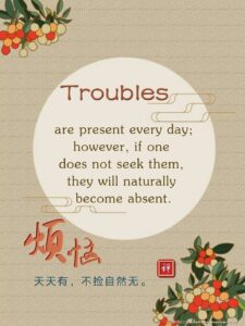 Words of Wisdom | Troubles Published on February 11, 2021 Troubles are present every day; however, if one does not seek them, they will naturally become absent. 烦恼天天有,不捡自然无。 – Master Jun Hong Lu, Words of Wisdom Volume 7